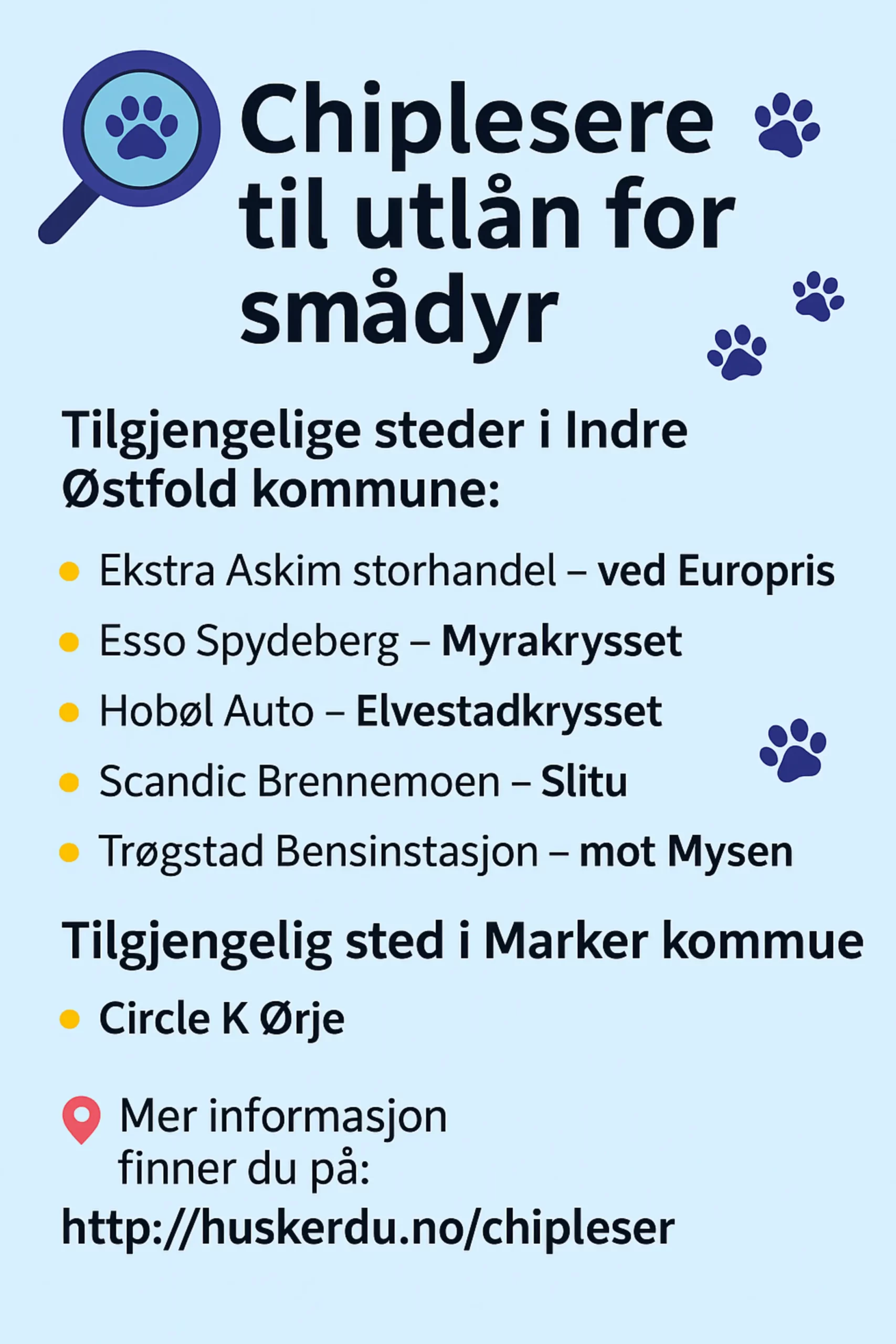 For dyrets beste er det viktig at chipleseren lånes med, slik at bortkomne dyr slipper å bli fraktet rundt i Indre Østfold for scanning. Ikke bring dyr til utlånssted. Dersom et dyr rømmer på et ukjent sted, kan det gjøre gjenforeningen mer utfordrende for både eier og finner.