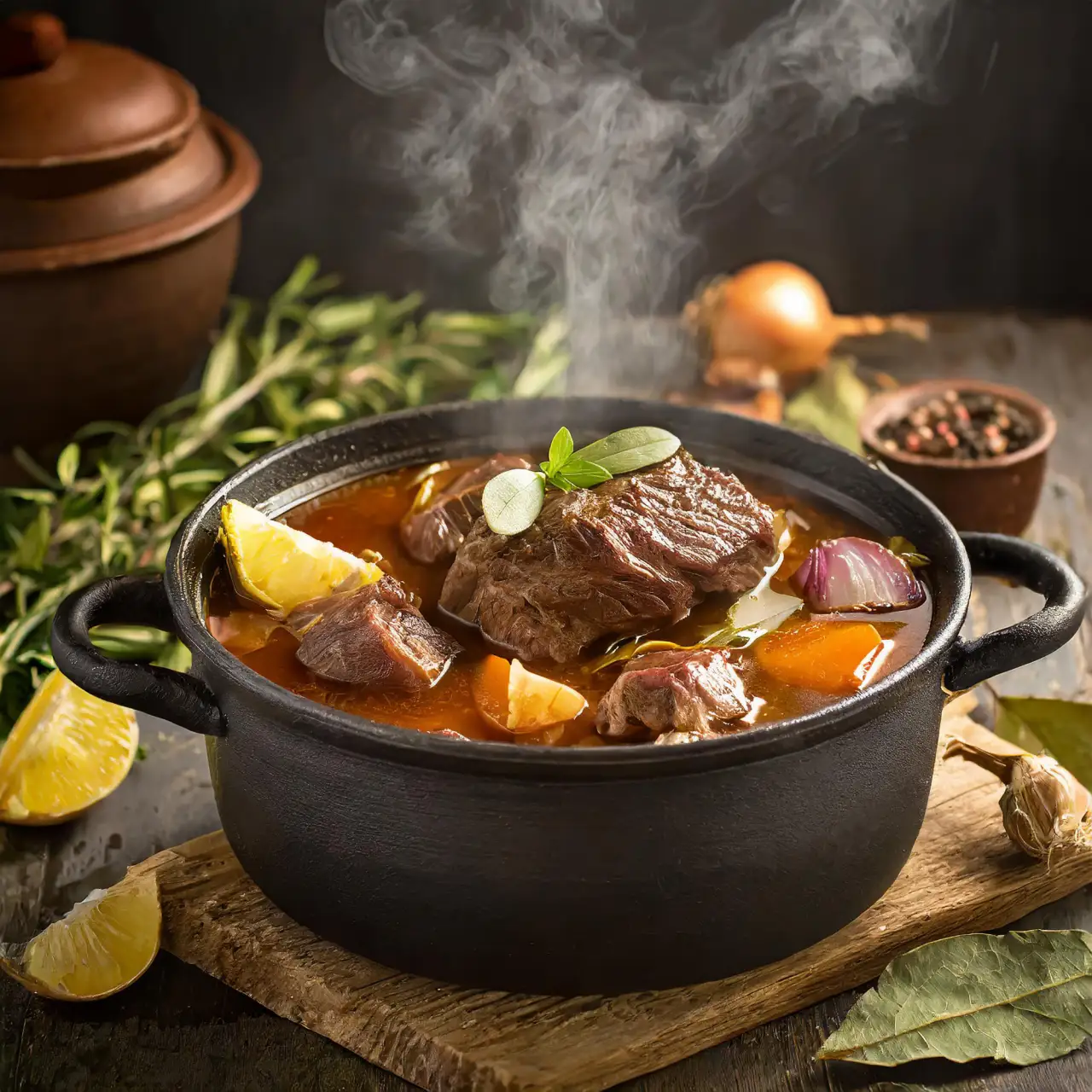 storfekjøtt, lam, kylling, gul løk, sjalottløk, hvitløk, laurbærblad, oregano, timian, sitron, sitronsaft, sitronskall, kjøttkraft, kyllingkraft, fond, Jacobs kraft, maisenna