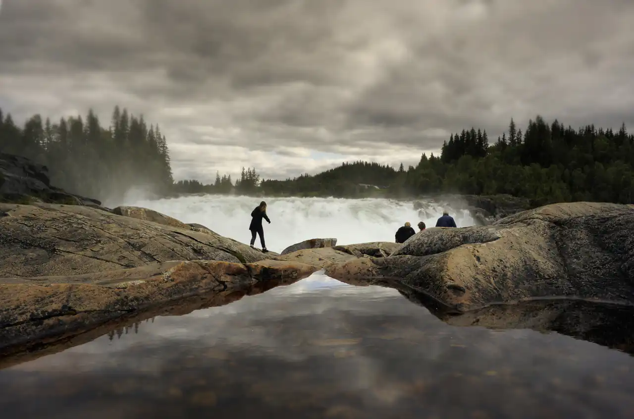 Meråker er kjent for sine sterke elver og fosser som trekker både lokale og turister til bredden. Her kan du oppleve vannets krefter på nært hold, omgitt av stille skog og fjell. Mange besøker fossene for å fiske i Stjørdalselva, gå korte turer langs bredden eller bare nyte synet av naturens kraft. Stedet gir et innblikk i hvordan vannet har formet både landskapet og livet i Meråker gjennom tidene.