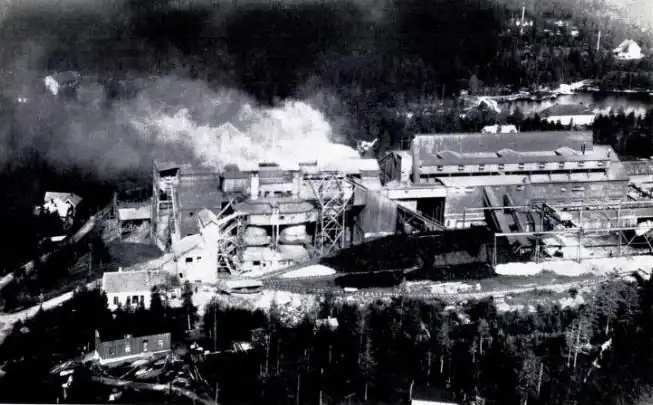 Meraker Smelteverk åpnet i 1898 og ble i over hundre år hjørnesteinsbedriften i Kopperå. Fabrikken produserte karbid og senere silisiumlegeringer, med råvarer fraktet på Meråker Line til utskipning i Muruvik ved Trondheimsfjorden. På det meste sysselsatte smelteverket flere hundre arbeidere og satte preg på hele lokalsamfunnet. Bildet fra rundt 1957 viser anlegget i full drift, en epoke som varte til nedleggelsen i 2006.