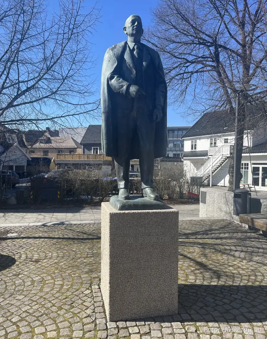 På torget i Askim står statuen av Peter Mathias Britanus Olsen Røwde, grunnleggeren av Askim Gummivarefabrikk. Skulpturen viser ham stående med frakk over skuldrene og blikket vendt mot byen han bidro til å forme. Den granittkledde sokkelen står på en rund plass med brostein, omgitt av trær og bygninger som vitner om et levende sentrum. Statuen er et lokalt landemerke og et minne om en av byens mest innflytelsesrike industriledere.